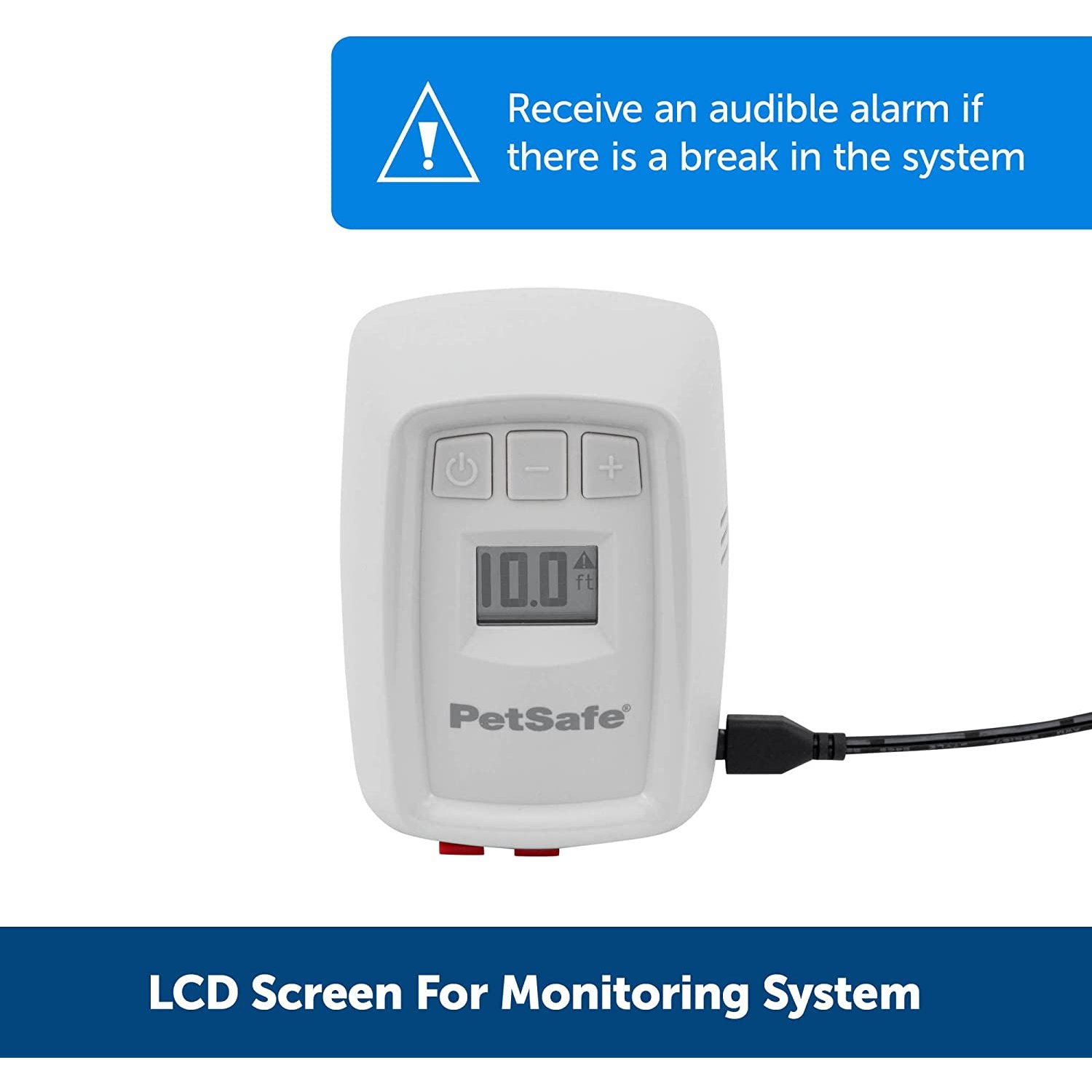 • LCD SCREEN: Digital LCD screen shows you what the boundary distance is set to and displays a warning indicator so you will know if there is a wire break